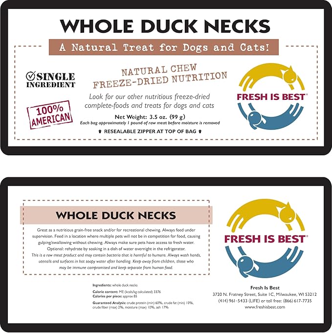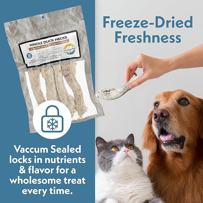 Fresh Is Best Freeze Dried Dog Treats – Raw Freeze Dried Cat Treats in Resealable Zipper Bag – High-Protein Duck Necks for Dogs & Cats – Made in The USA