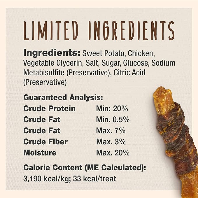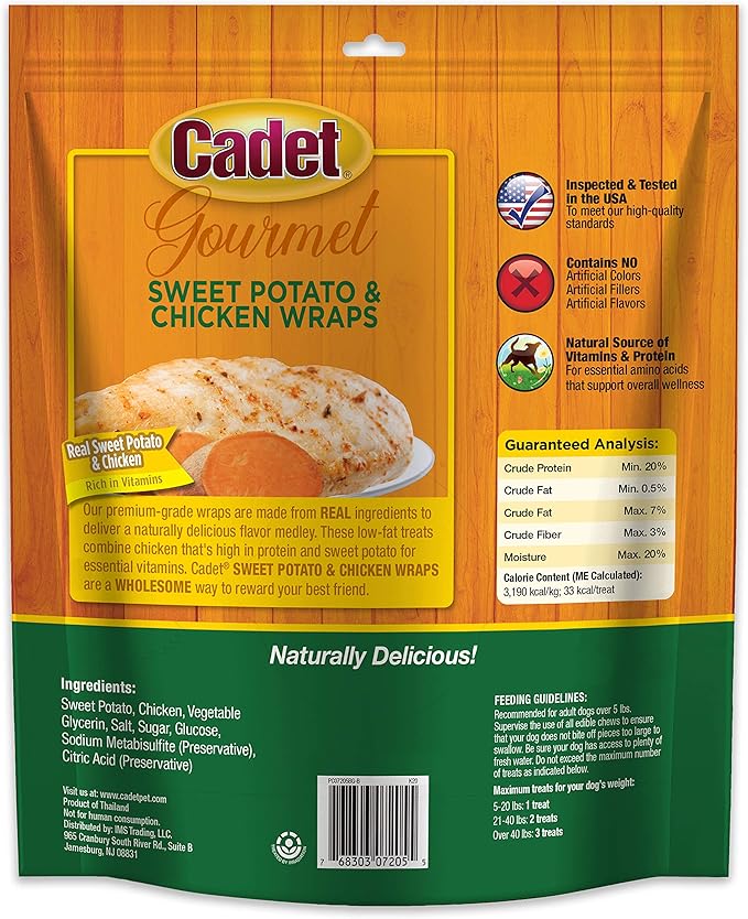 Cadet Gourmet Sweet Potato & Chicken Wraps Limited-Ingredient Dog Chews, Healthy and Natural Training Treats for Small and Large Dogs, 28 oz.