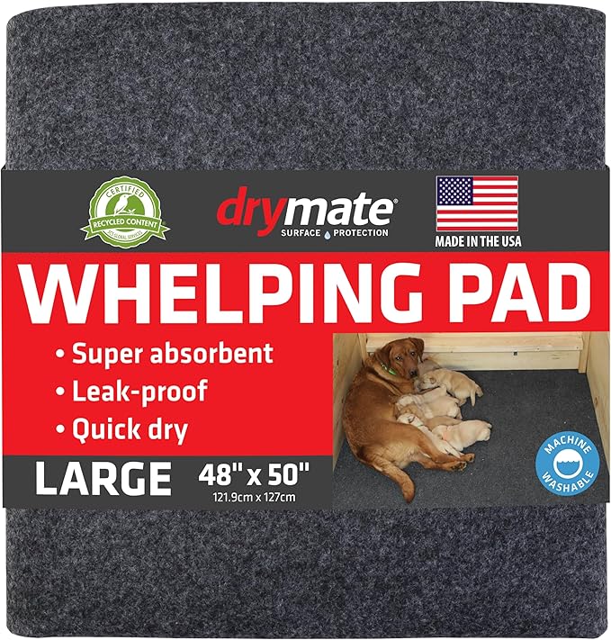 Drymate Whelping Box Liner Mat, Machine Washable, Super Absorbent, Waterproof, Quick Dry, Slip-Resistant, Reusable Dog Puppy Pee Pads for Training, Housebreaking, Incontinence, Crate (USA Made)(48x50)