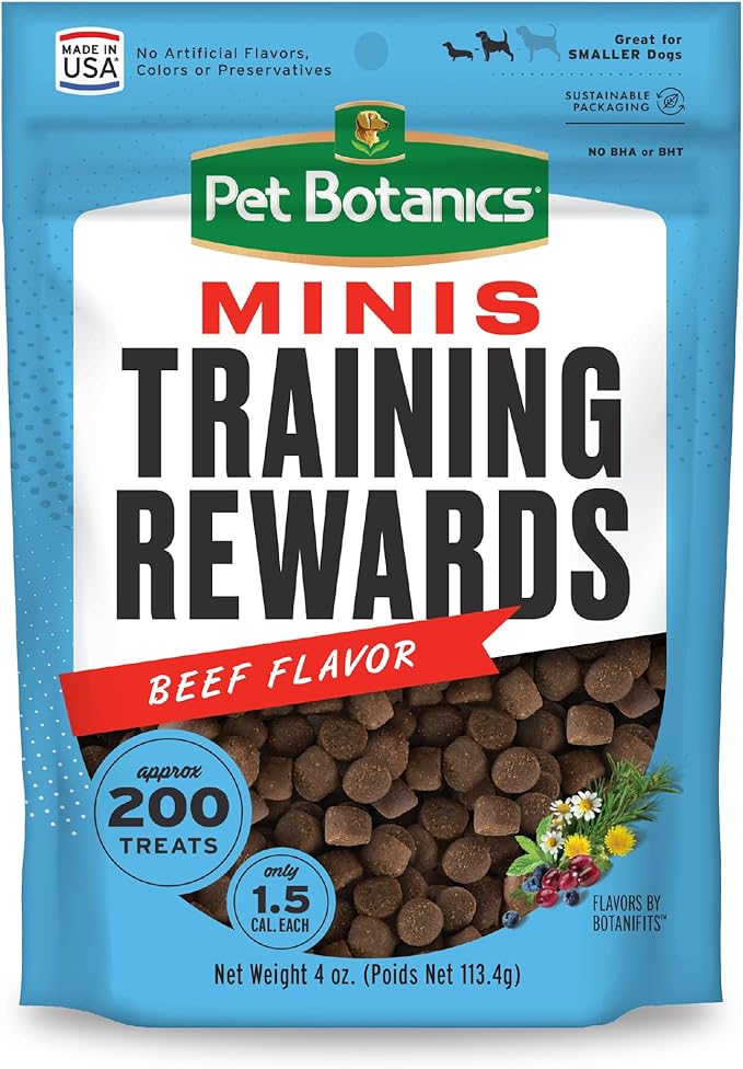 Pet Botanics 4 oz. Pouch Training Rewards Mini Soft & Chewy, Beef Flavor, with 200 Treats Per Bag, The Choice of Top Trainers