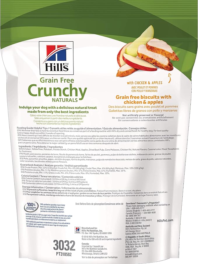 Hill's Grain Free Crunchy Naturals Treats, All Life Stages, Great Taste, Dog Treats, Chicken & Apples, 8 oz Bag