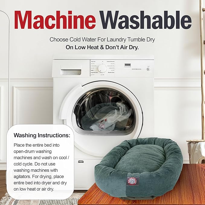 Majestic Pet 24 Inch Micro Velvet Calming Dog Bed Washable – Cozy Soft Round Dog Bed with Spine for Head Support - Fluffy Donut Dog Bed 24x19x7 (inch) – Round Pet Bed Small – Azure