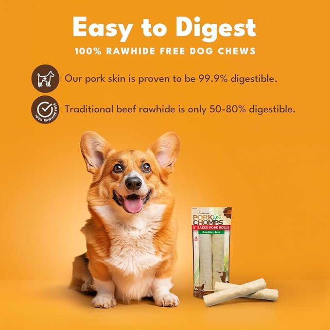 Pork Chomps Baked Pork Skin Dog Chews, 8-inch Rolls, 2 Count