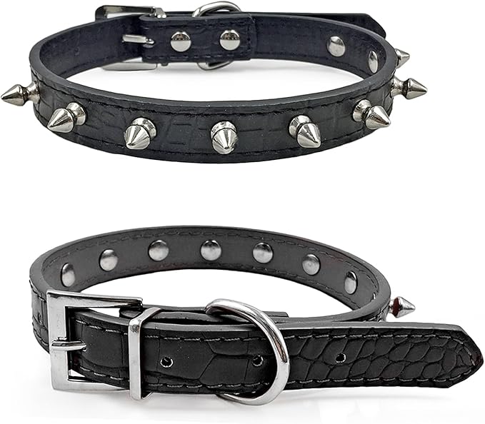 Enjoying Spiked Dog Collar, Leather Spikes Dog Collars for Small Medium Dogs, Adjustable Pet Collar with Rings, Black M