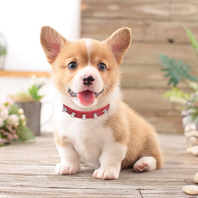 Enjoying Spiked Cat Collar, Leather Spikes Dog Collars for Cats Small Dogs, Adjustable Pet Collar with Rings, Red S