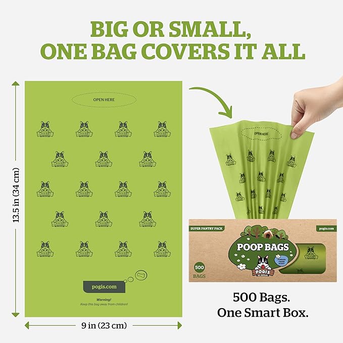 Pogi's Poop Bags – Large, Leak-Proof Dog Waste Bags for Yard or Home Use, Fresh Scent (Single Roll, 500-Count)