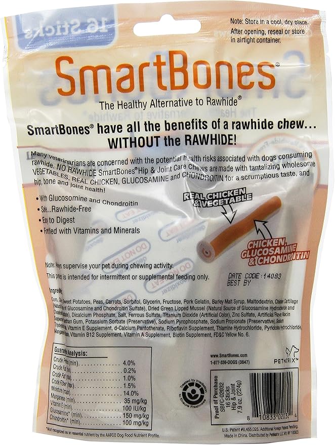 SmartBones Hip And Joint Care Sticks, Rawhide-Free Chews For Dogs, With Glucosamine And Chondroitin, 16 Count