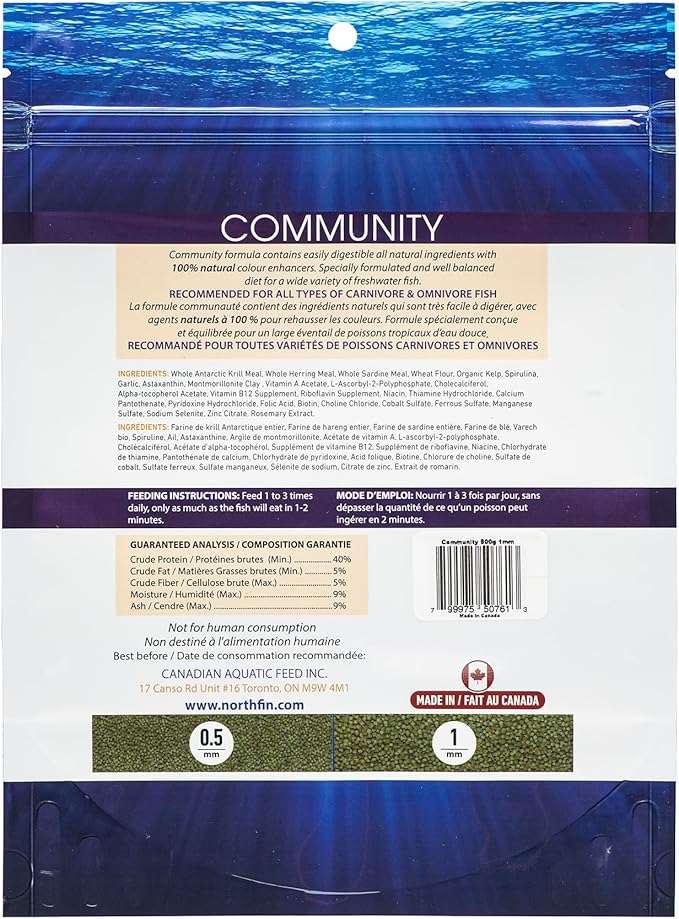 Northfin Fish Food Community Formula Slow Sinking Pellets (1mm 500g)
