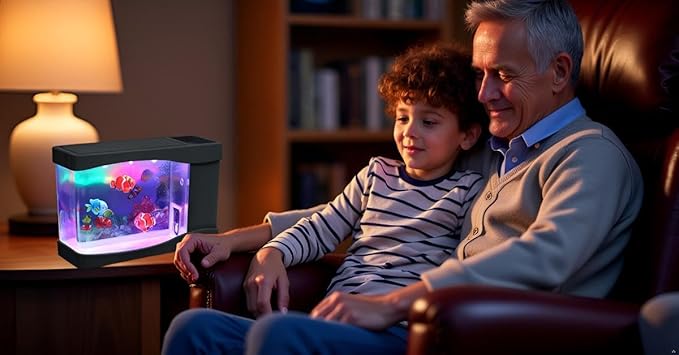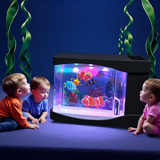 Lightahead Artificial Mini Aquarium A Sensory Multi Colored LED Swimming Fish Tank with Bubbles