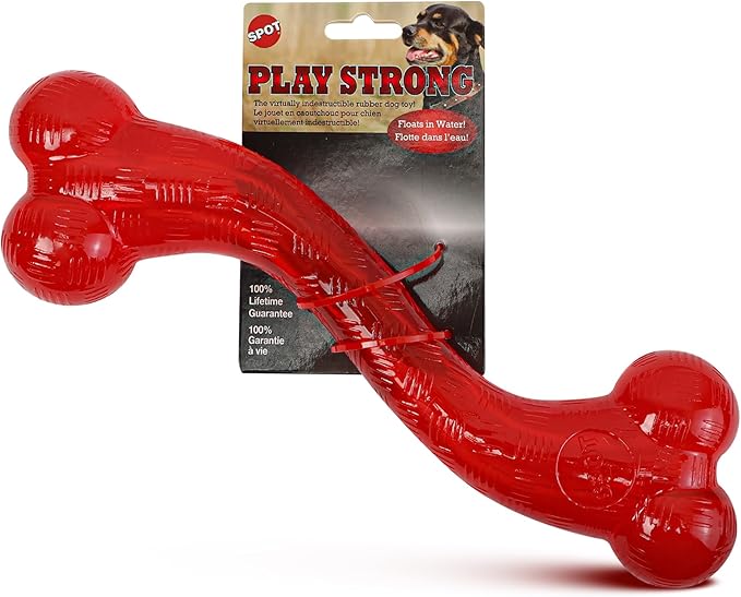 SPOT Play Strong S Bone - Durable TPR, Long Lasting Dog Chew for Aggressive Chewers, Hollow Center to Hide Treats, Virtually Indestructible Toy for Large Dogs & Puppies up to 90lbs - 12 inch