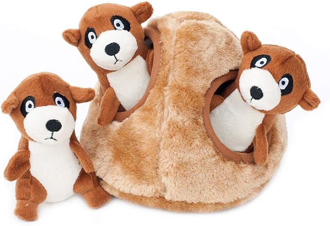 ZippyPaws - Zoo Friends Burrow, Interactive Squeaky Hide and Seek Plush Dog Toy - Meerkat Miniz, 3 Pack