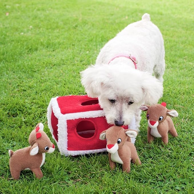 ZippyPaws Holiday Burrow- Interactive Dog & Puppy Toy for Boredom, Stimulating Pet Product to Keep them Busy, Hide & Seek Plush Dog Puzzle, Enrichment Squeaky Toy for Small & Medium Dogs- Reindeer Pen