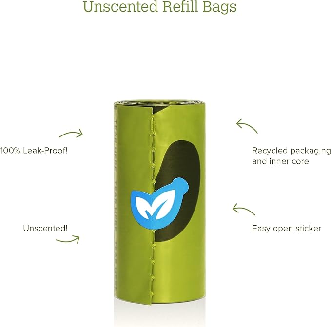 Earth Rated Dog Poop Bags Dispenser, Dog Poop Bag Holder Includes 1 Roll of 15 Unscented Eco-friendly Poop Bags (ERT00037)