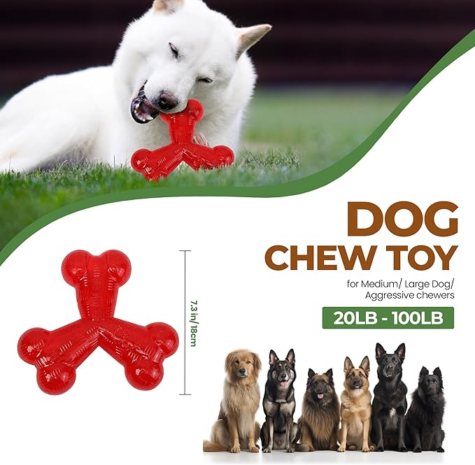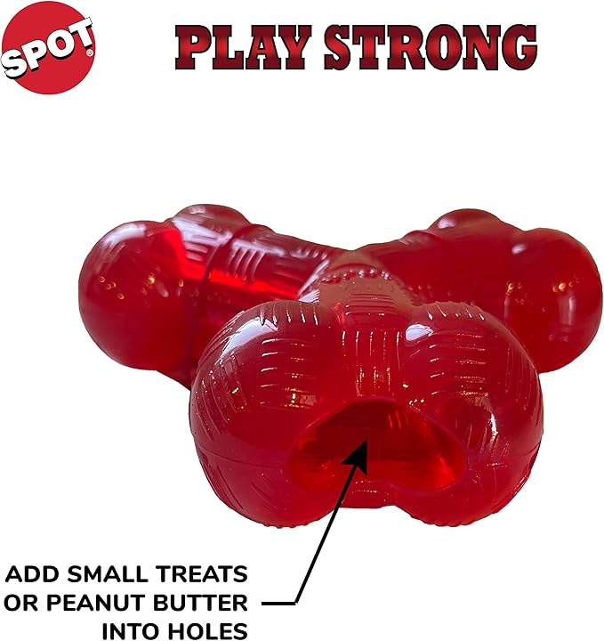 SPOT Play Strong Trident Bone - Durable TPR Long Lasting Dog Chew for Aggressive Chewers, Hole for Treats, Virtually Indestructible Toy for Large Dogs & Puppies up to 90lbs - 6 inch