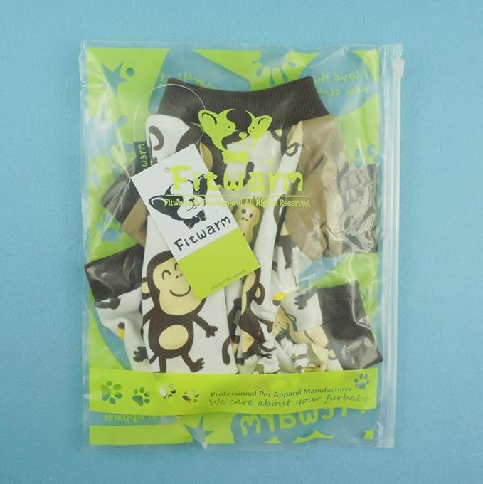 Fitwarm Monkey Dog Pajamas, Cute Dog Clothes for Small Dogs Boy Girl, Pet Onesie Clothing, 100% Breathable Cotton, Brown, Small