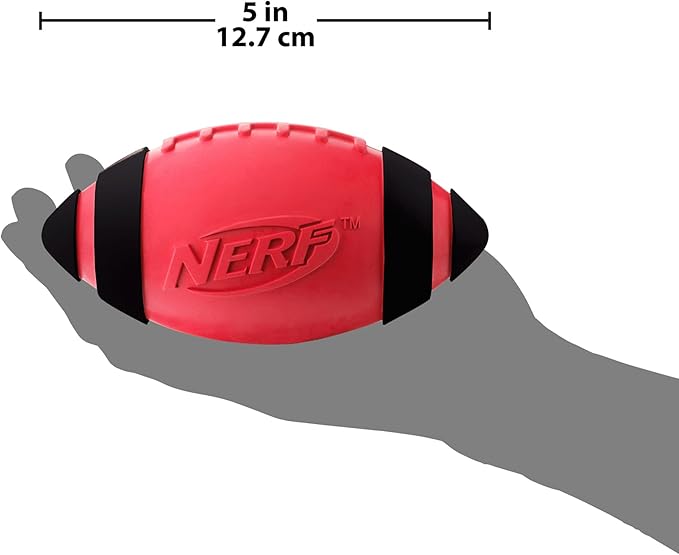 Nerf Dog Rubber Football Dog Toy with Interactive Squeaker, Lightweight, Durable and Water Resistant, 5 Inch Diameter for Medium/Large Breeds, Single Unit, Red