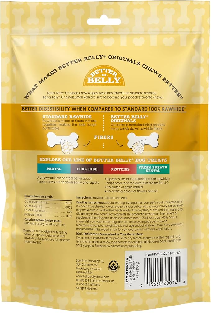 Better Belly Highly Digestible Rawhide Small Roll Chews, Treat Your Dog to a Chew with NO Artificial Colors or Flavors