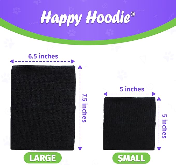 Happy Hoodie The Original Dog & Cat Calming Band - American Brand - Anxiety Relief/Noise Protection-Grooming-Thunder-Fireworks 2 Pack Black (1 Small, 1 Large) - Since 2008