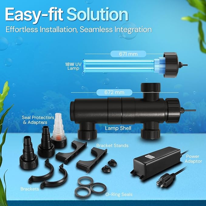 About This Quick & Effective Water Clarification: Achieve crystal-clear water in just days with our 18-Watt UV-C light UV pond... Read more