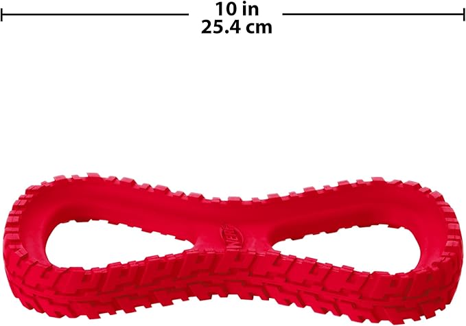 Nerf Dog Rubber Tug Dog Toy with Interactive Tire Track Texture, Lightweight, Durable and Water Resistant, for Medium/Large Breeds, Single Unit, Red