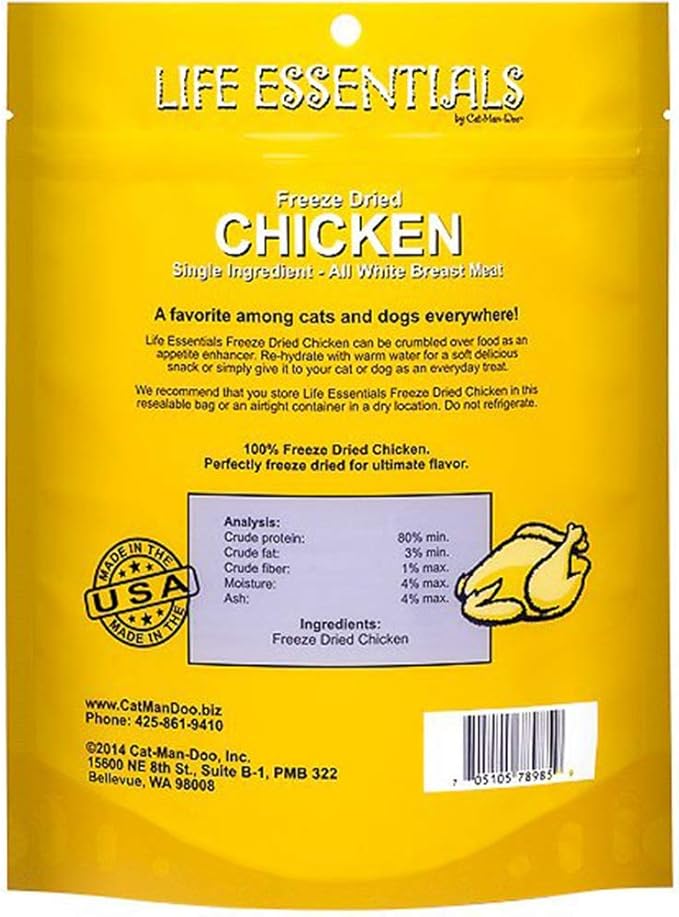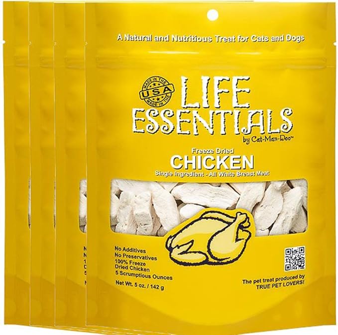 LIFE ESSENTIALS BY CAT-MAN-DOO All-Natural Freeze Dried Chicken Treats for Dogs & Cats Free of Grains, Fillers, Additives and Preservatives Proudly Made in The USA - 4 Pack (5 oz. Bag)