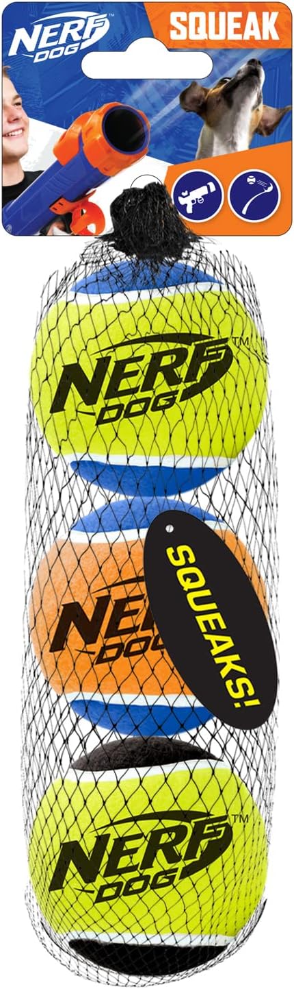 Nerf Dog Tennis Ball Dog Toy with Interactive Squeaker, Lightweight, Durable and Water Resistant, 2.5 Inches, for Small/Medium/Large Breeds, Three Pack, Assorted Colors