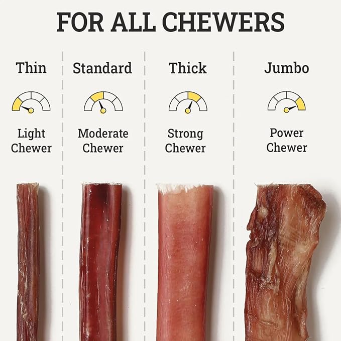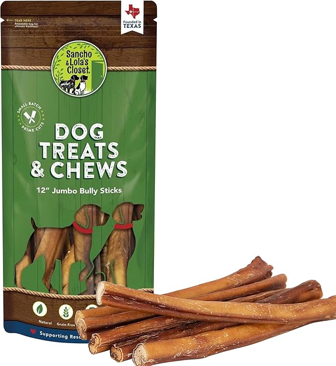 Supreme 12-inch Jumbo Bully Sticks by Sancho and Lola’s (5 Pack) All-Natural, Long-Lasting Dog Chew Treats - Free-Range, Grass-Fed Beef - Low Odor
