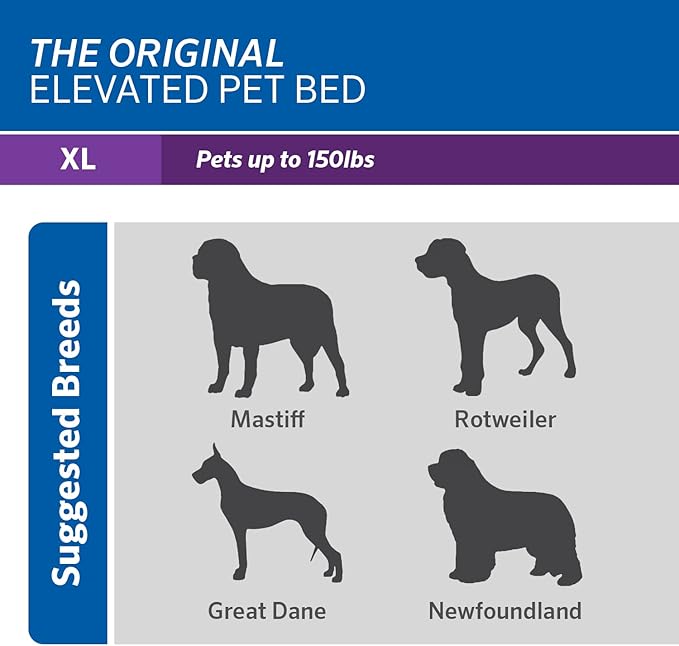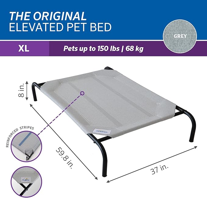 Coolaroo Original Elevated Dog Bed - Breathable Off-The-Ground Pet Bed with Cooling Fabric, Joint Relief & Moisture-Resistant Fabric, 100% Recyclable, Easy Clean, Gray, Extra Large