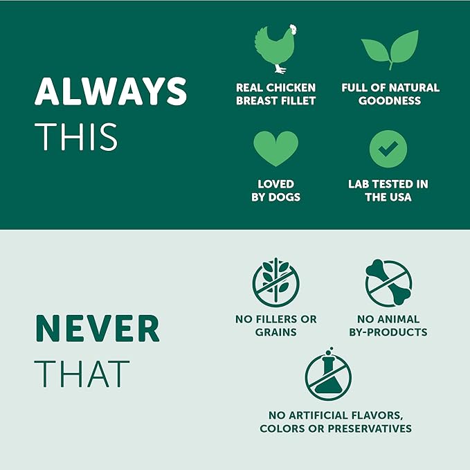 - NUTRITIOUS - The natural goodness of real chicken breast provides the nutrition and protein needed to help maintain a healthy diet, while the soft, chewy texture and flavor will satisfy your dog's taste buds.