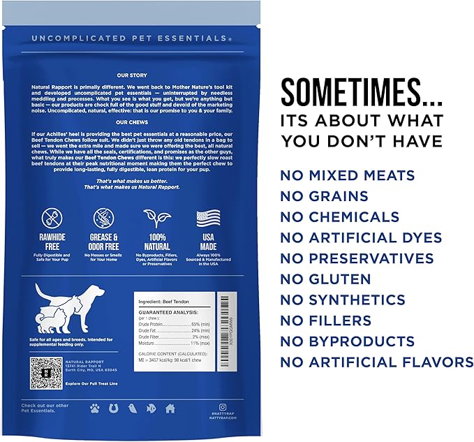 Natural Rapport Beef Tendon Dog Treats - The Only Beef Tendon Chews Dogs Need- All Natural Dog Treats for Small and Large Dogs (5 Chews)