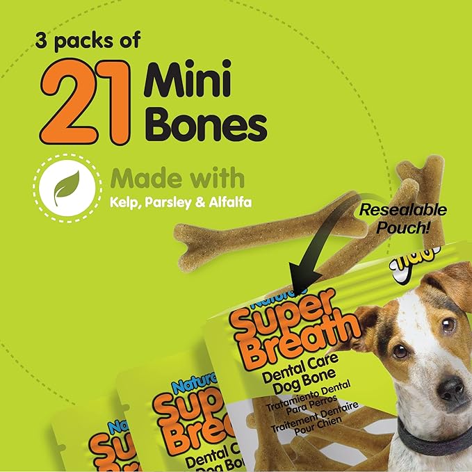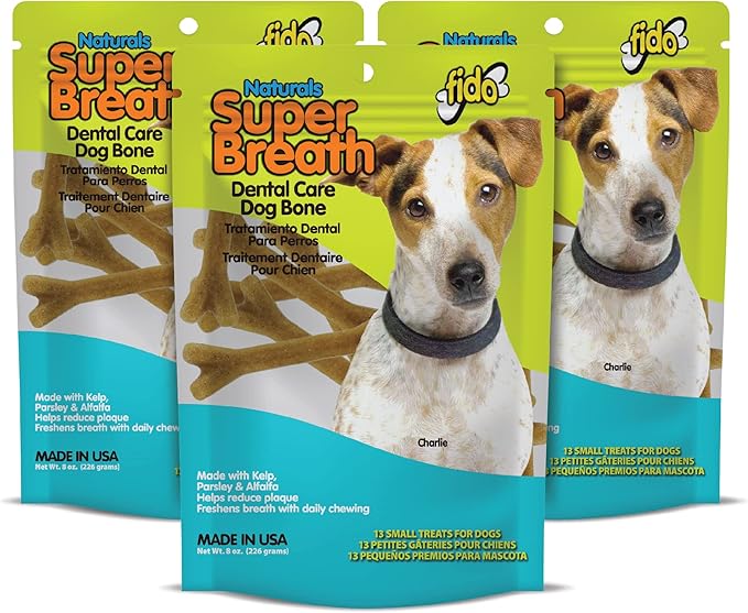 Fido - Super Breath Dental Care Bones for Dogs - 13 Treats Per Pack (3 Pack) - for Small Dogs (Made in USA) - Dog Dental Chews Help Reduce Plaque, Tartar Buildup, and Freshens Breath