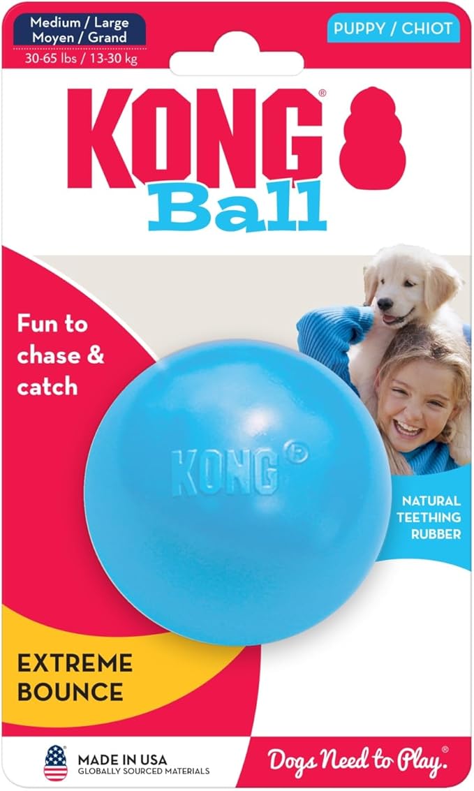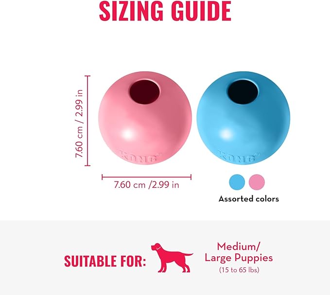KONG Puppy Ball w/Hole - Soft & Durable Activity Ball for Puppies - Dog Toy Supports Healthy Exercise & Interactive Play - for Natural Teething - for Medium/Large Puppies - Randomly Provided Color