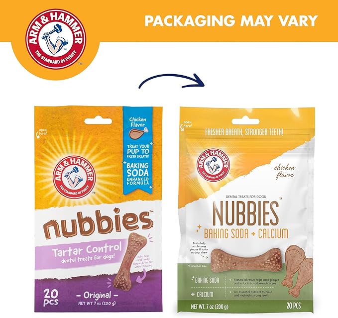 Arm & Hammer for Pets Nubbies Dental Treats for Dogs with Baking Soda & Calcium, Treat Chews Help Fight Bad Breath, Plaque & Tartar without Brushing, Chicken Dog, Sm Size, 20 Pcs (Packaging may vary)
