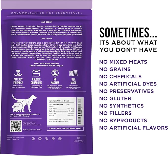 Natural Rapport Chicken Jerky Dog Treats - The Only Chicken Tender Jerky Dogs Need - All Natural Dog Treats for Small and Large Dogs (8 oz)