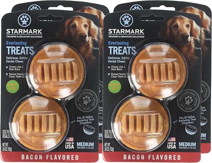 About This 8 count bacon flavored medium Everlasting Treats (4 packages of 2 treats each) for dogs under 40 pounds... Read more