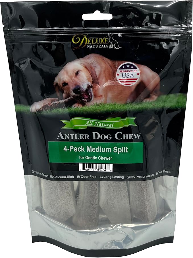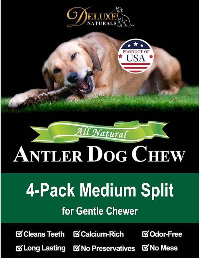 Elk Antler Dog Chews | Long-Lasting A-Grade Premium Elk Antler Chews for Dogs from Naturally Shed Elk Antlers Collected in The USA, Split, Medium (Pack of 4)