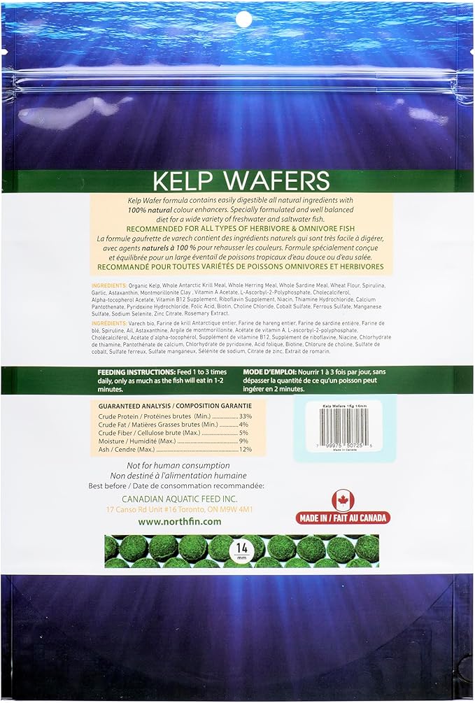 About This NorthFin Kelp Wafers are professionally developed to provide Plecostomus and other bottom-dwelling grazers with a healthy, balanced diet.... Read more