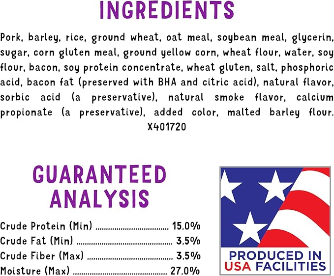 About This Real meat is the number 1 ingredient in our bacon flavored treats. Big. bacony flavor in small dog... Read more