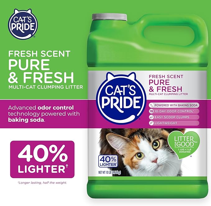 Cat's Pride Premium Lightweight Clumping Litter: Pure & Fresh - Up to 10 Days of Powerful Odor Control - Multi-Cat, Scented, 10 Pounds