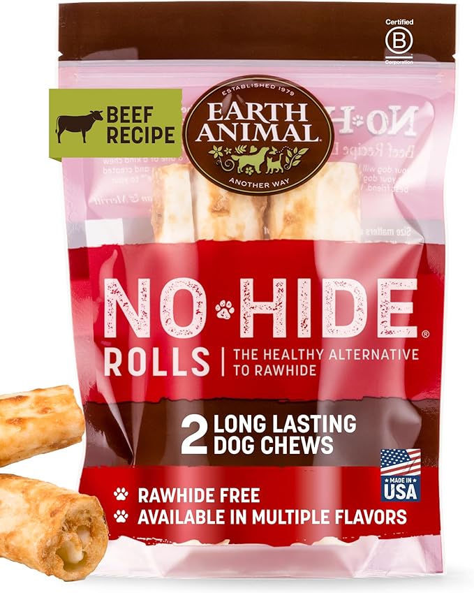 Earth Animal No Hide Chews - Long Lasting Rawhide Free Medium Dog Chews Rolls, Beef - 2 Count