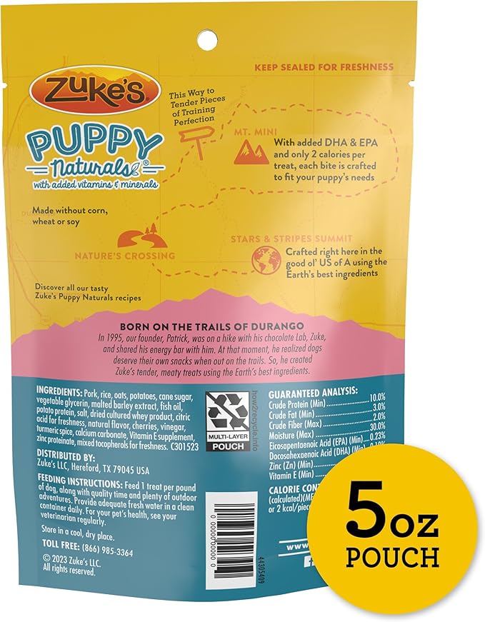 Zuke's Puppy Naturals Dog Training Treats, Pork & Chickpea Recipe, Nutrient-Rich Mini Dog Treats for Training, Grain Free Puppy Treats, 5 OZ Bag (Pack of 1)