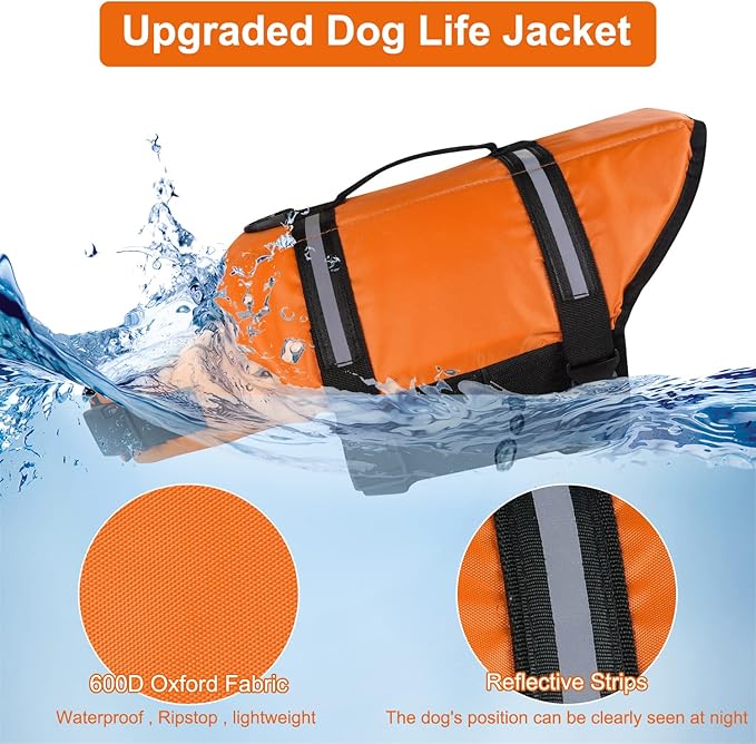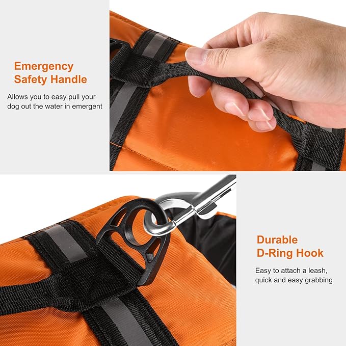 HAOCOO Dog Life Jacket Vest Saver Safety Swimsuit Preserver with Reflective Stripes/Adjustable Belt Dogs?Orange,S