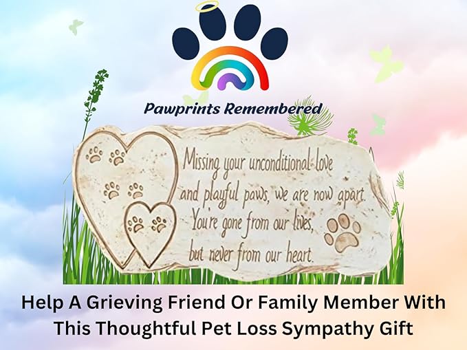 - 🌈 A THOUGHTFUL PET LOSS SYMPATHY GIFT - Help a grieving friend or loved one remember their special dog or cat with this beautiful pet memorial stone that incorporates the shape of a heart with paw prints. The stone is etched with a poem that lets you memorialize that special companion who has crossed the rainbow bridge..