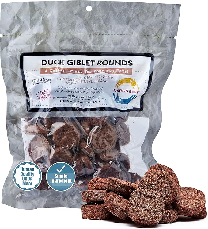 Fresh Is Best Freeze Dried Dog Treats – Raw Freeze Dried Cat Treats in Resealable Zipper Bag – High-Protein Duck Giblets for Dogs & Cats – Made in The USA