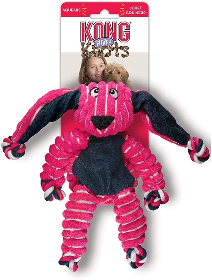 KONG Floppy Knots - Durable No‑Stuffing Squeaky Rope & Plush Dog Toy - for Teething, Playing (Bunny, Small/Medium)