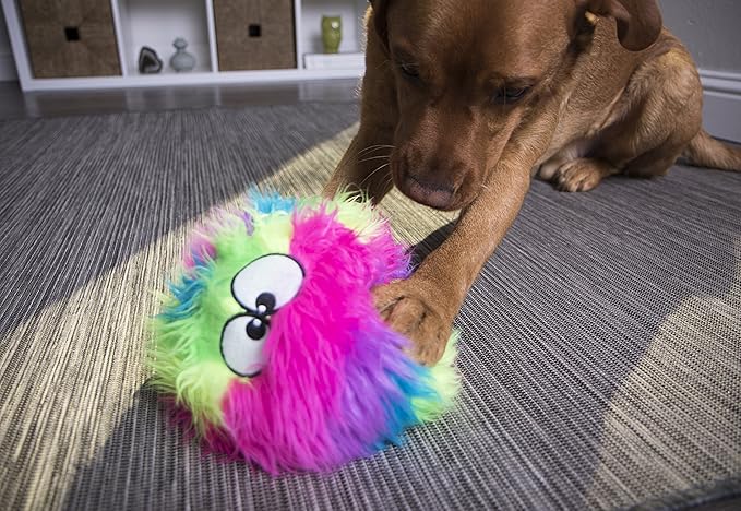 goDog Furballz Squeaky Plush Ball Dog Toy, Chew Guard Technology - Rainbow, Large