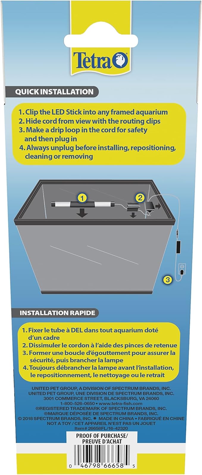 Tetra Hidden LED Stick 6 Inches, Brilliant White Aquarium Light for Tanks Up to 15 Gallons, Model Number: 26658