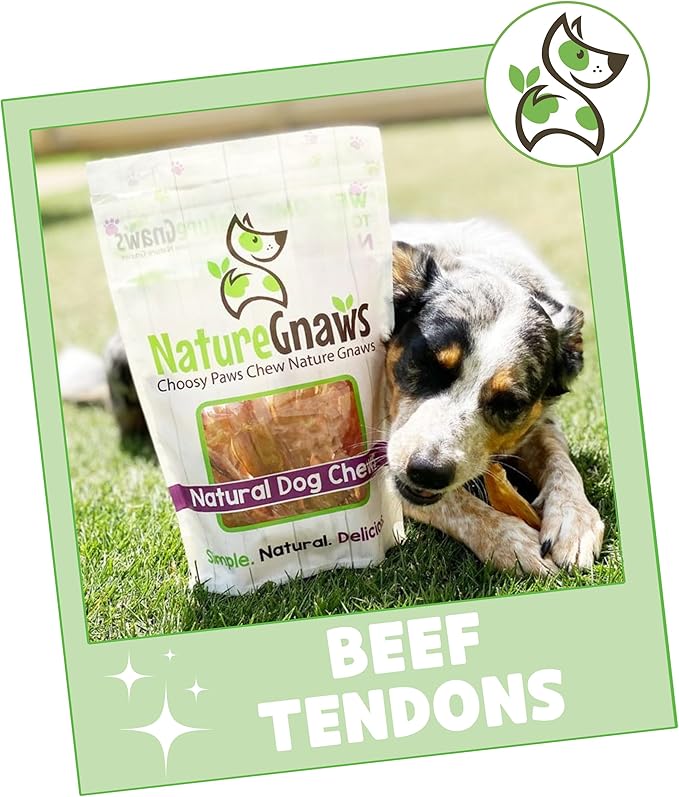 Nature Gnaws Beef Tendons for Dogs 4-5" (12 Count) - Mixed Thickness - Long Lasting for Small and Medium Dogs - Natural Beef Jerky Dog Chew Bones - Rawhide Free
