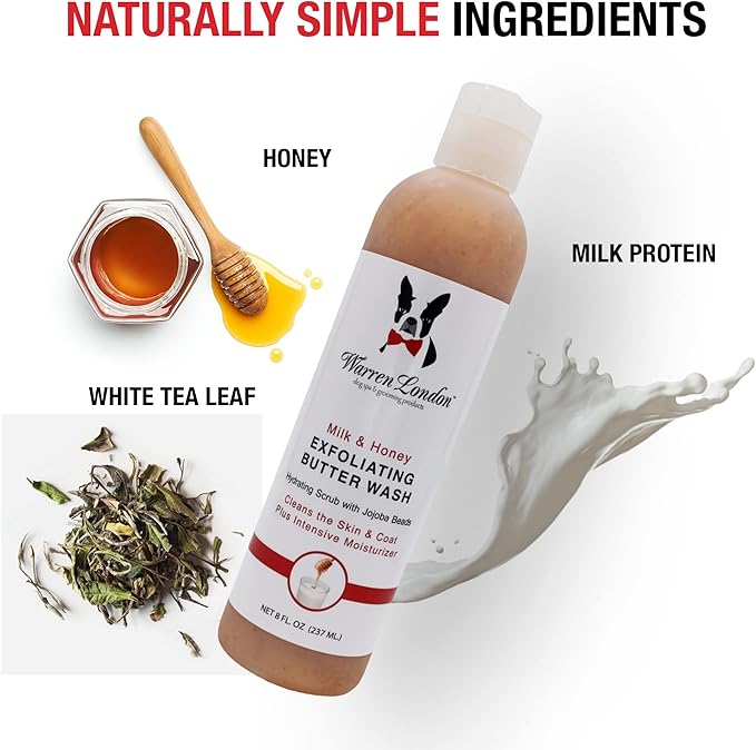 - Clean, Exfoliate, & Hydrate with Exfoliating Butter Wash - This premium shampoo hydrates your canine’s skin and coat with premium ingredients, such as Jojoba beads and botanical extracts for a healthy shine.