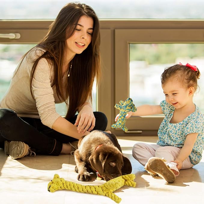 SunGrow Giraffe Cotton Knot Puppy & Ferret Ropes, Handwoven Chew Items for Small Breeds Dog, for Teeth and Gums, 2 Pieces per Pack